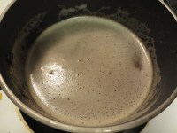 1. Melt butter until brown in pot on medium heat for about 15 min. Make sure to keep tabs on it. It will bubble and froth, so it might be hard to see. Use a spoon to stir. Once it looks a deeper yellow and there’s brown sediment on the bottom, you are done.