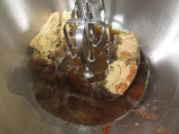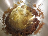 4. When butter is cooled, mix with brown sugar and sugar until combined. (starts smelling really good at this point!)