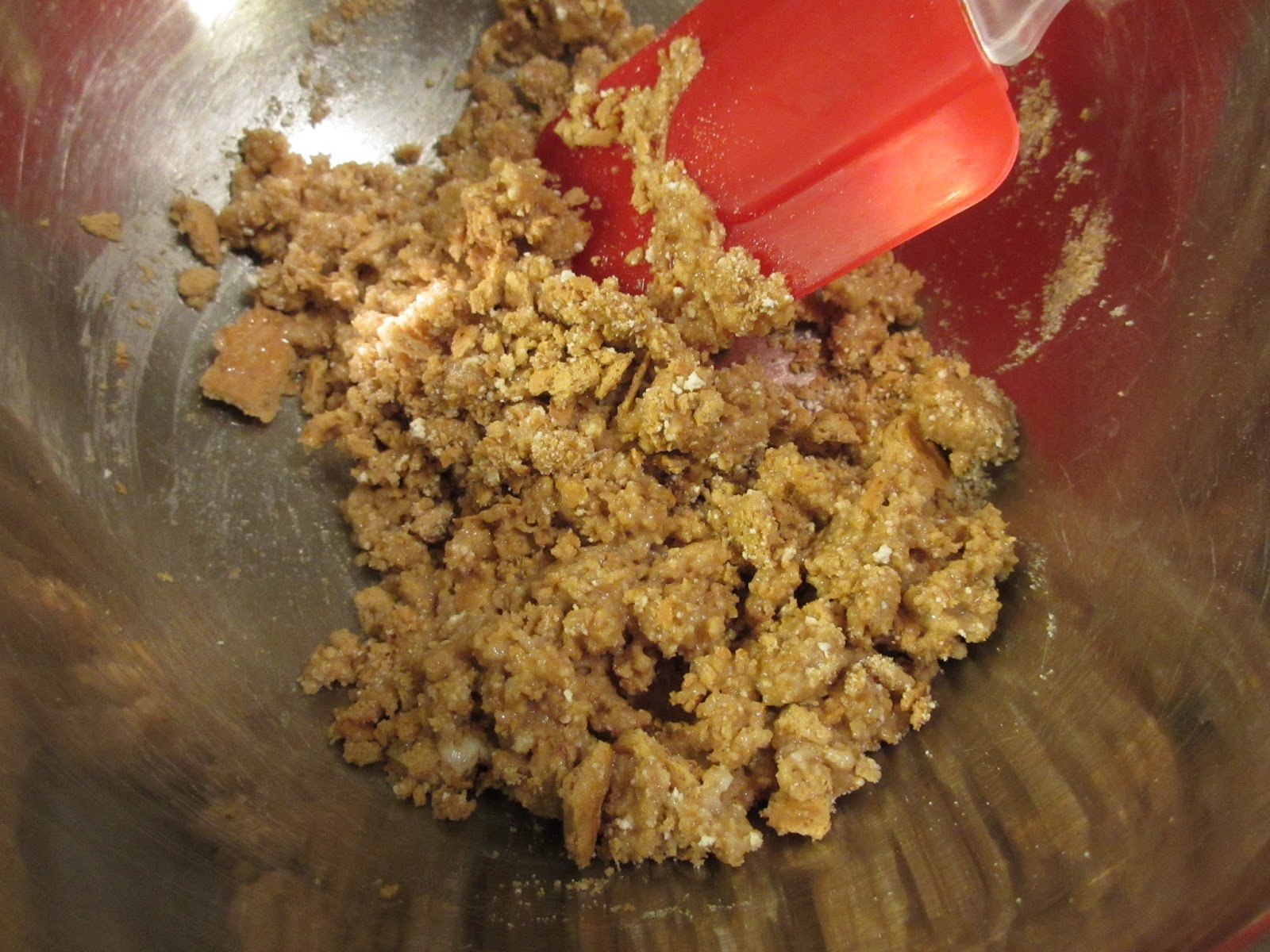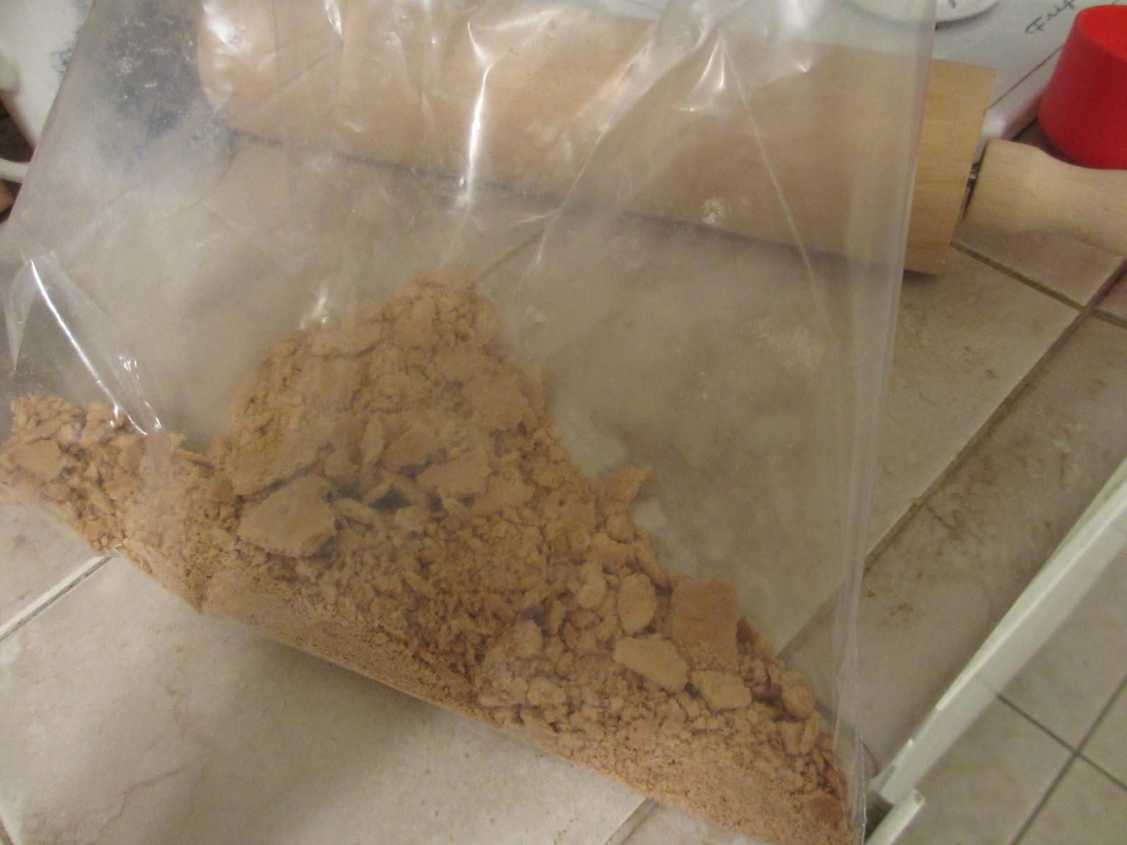 1. Using a rolling pin, smash the graham crackers until its a fine texture.