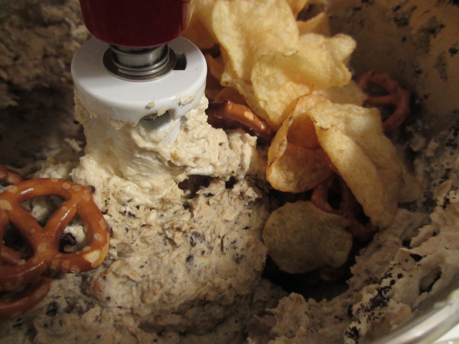5. Add potato chips and pretzels. [Dont break too many of them! They look cool if you see pretzel pieces in your cookie when you bake it later!]