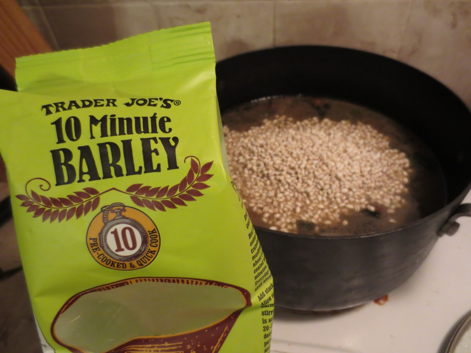 2/3 cup-1 cup barley [I used Trader Joes 10 min. barley]