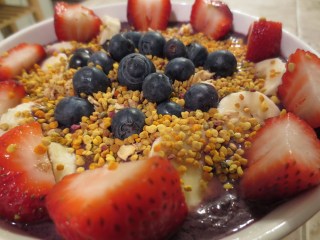 Hot Day? No Problem! Enjoy a vitamin, nutrition, flavor packed ACAI BOWL!!! If you live in SoCal, you totally should get acquainted with this delicious thing because its such a southern cali thing and they have it at a cafe in every beach area. NorCal people, get acquainted too because these are BOMB. My first ever acai bowl was at Swami’s Cafe, in between Del Mar and Solana Beach! I used to go all the time and after a gigantic meal of eggs and potatoes, I always ended with an acai bowl to share. It was also the first time I had BEE POLLEN. Swami’s puts it in the bowls, smoothies, or juices. It is such a dainty little thing and when I looked up where I can buy bee pollen in SD, my search came up with all these nutritional benefits of bee pollen.
