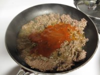 3. Add tomato sauce. Stir. (Dump out excess oil or water)