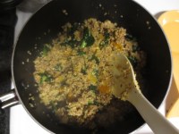 1. Cook the quinoa with 2 cups water. (Quinoa cooks fast on the stovetop or rice cooker, so you can prepare the beef while its cooking). Set aside.