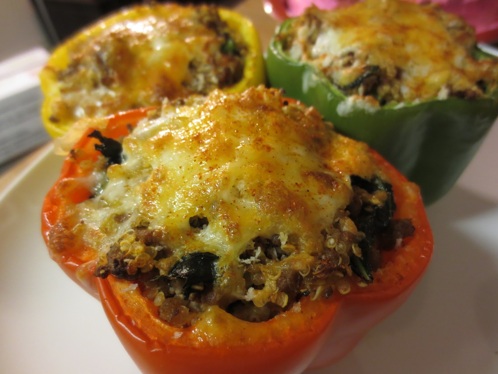 Curry Spiced Quinoa, Ground Beef, and Kale Stuffed Bell Peppers