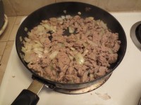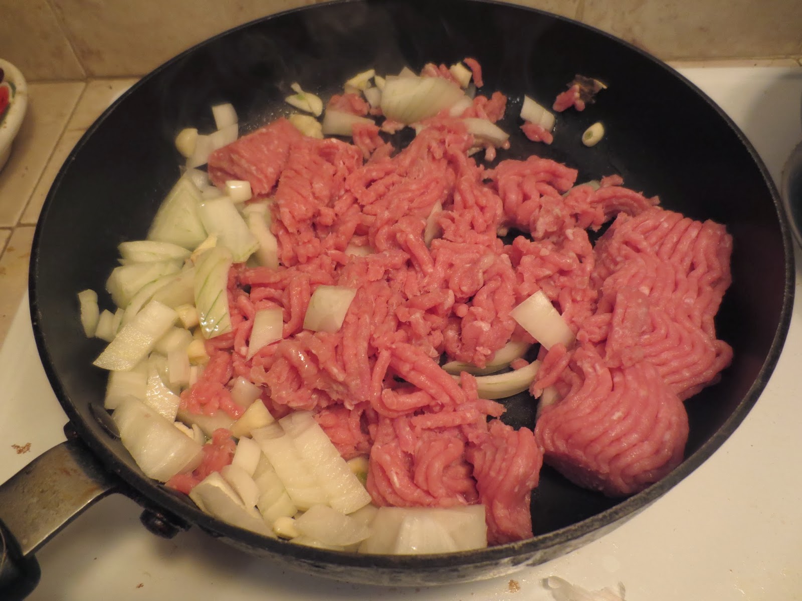 1. Brown the turkey, garlic, and onions with some olive oil. Set aside.