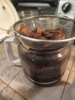 4. Using a strainer, pour the liquid through.