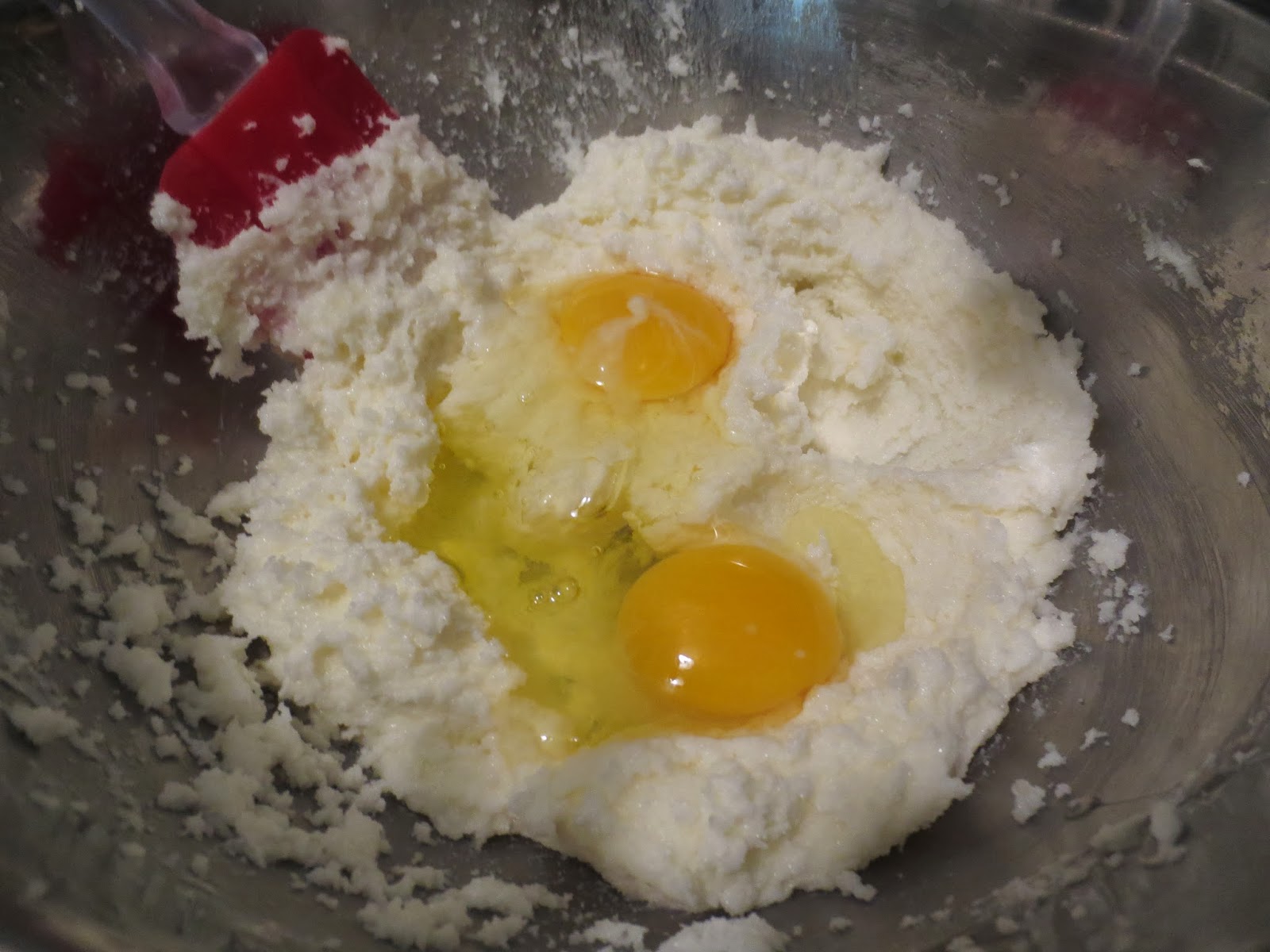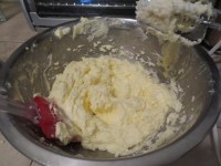5. Mix eggs into the butter mixture until fully incorporated, about 1-2 min.