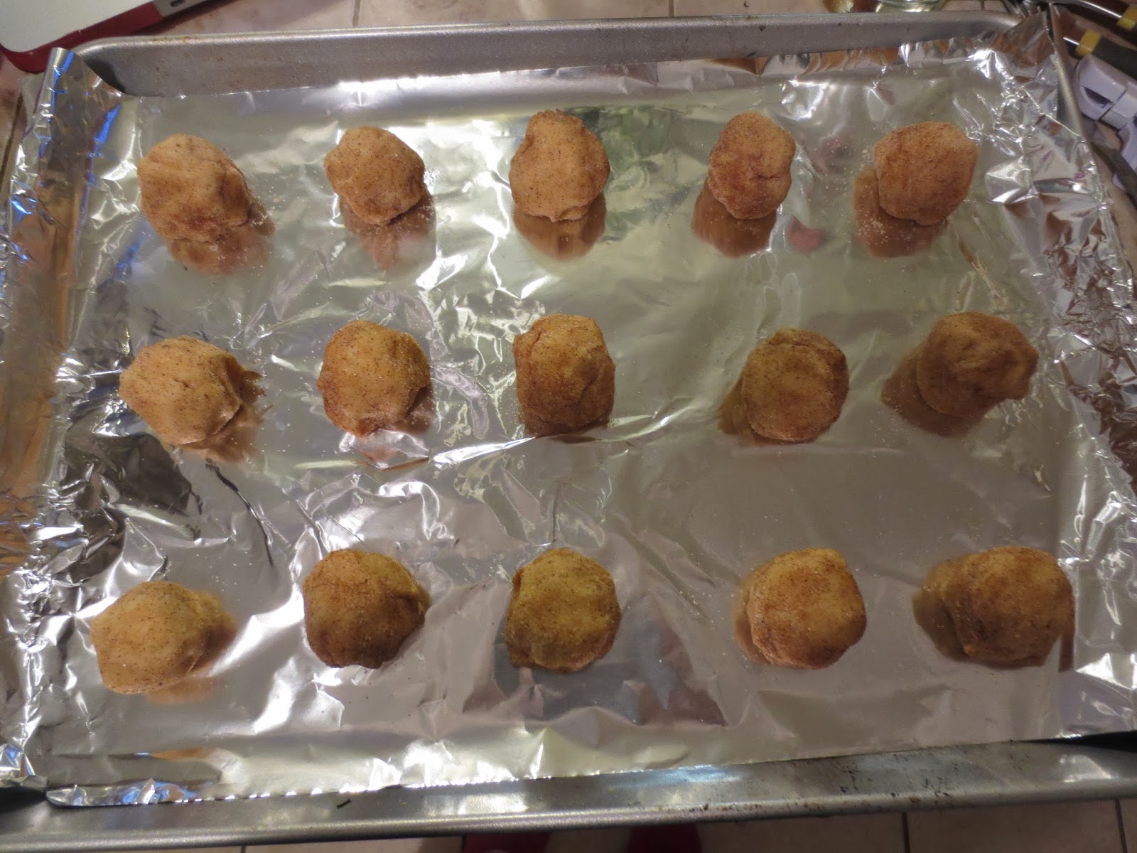 8. Roll the balls in the sugar. Place on cookie sheet.