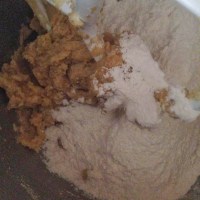 4. Once incorporated, mix in the flour to form the cookie dough.