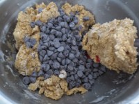 5. Using a spatula, mix the flour into the batter. Add the chocolate chips.