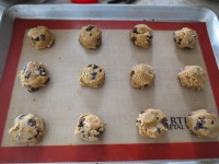 6. Using a cookie scoop or by hand, make 1 tbsp balls. Place on a silicon lined or parchment lined cookie sheet.