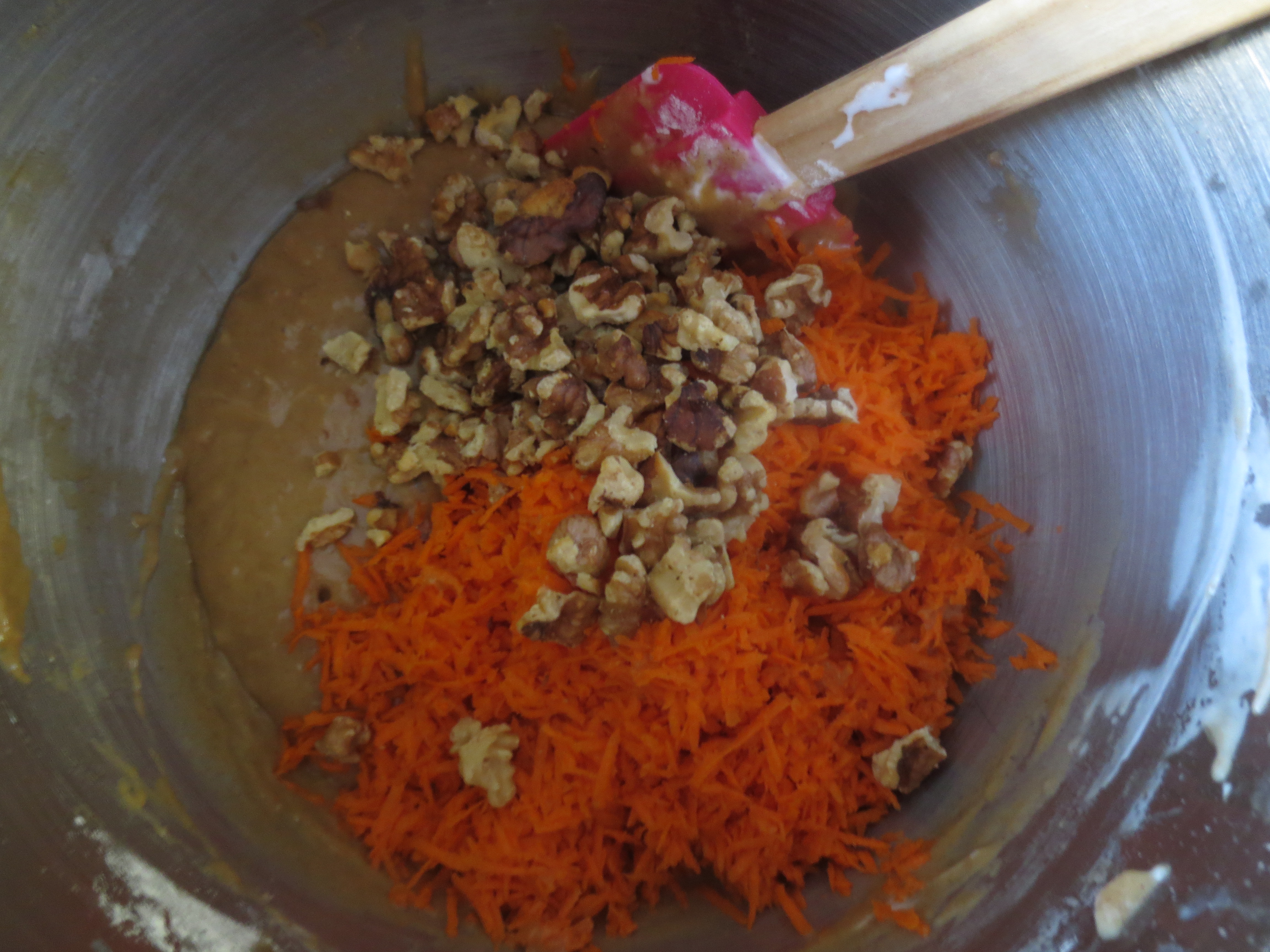 7. Mix in the carrots and walnut/pecan pieces until just combined.