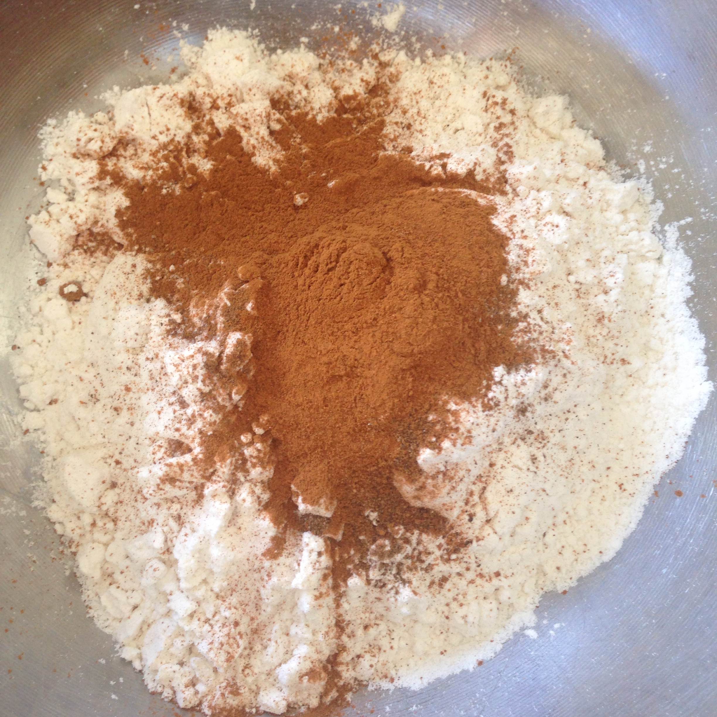 2. In a separate bowl, mix together flour, salt, baking powder, baking soda, and spices.