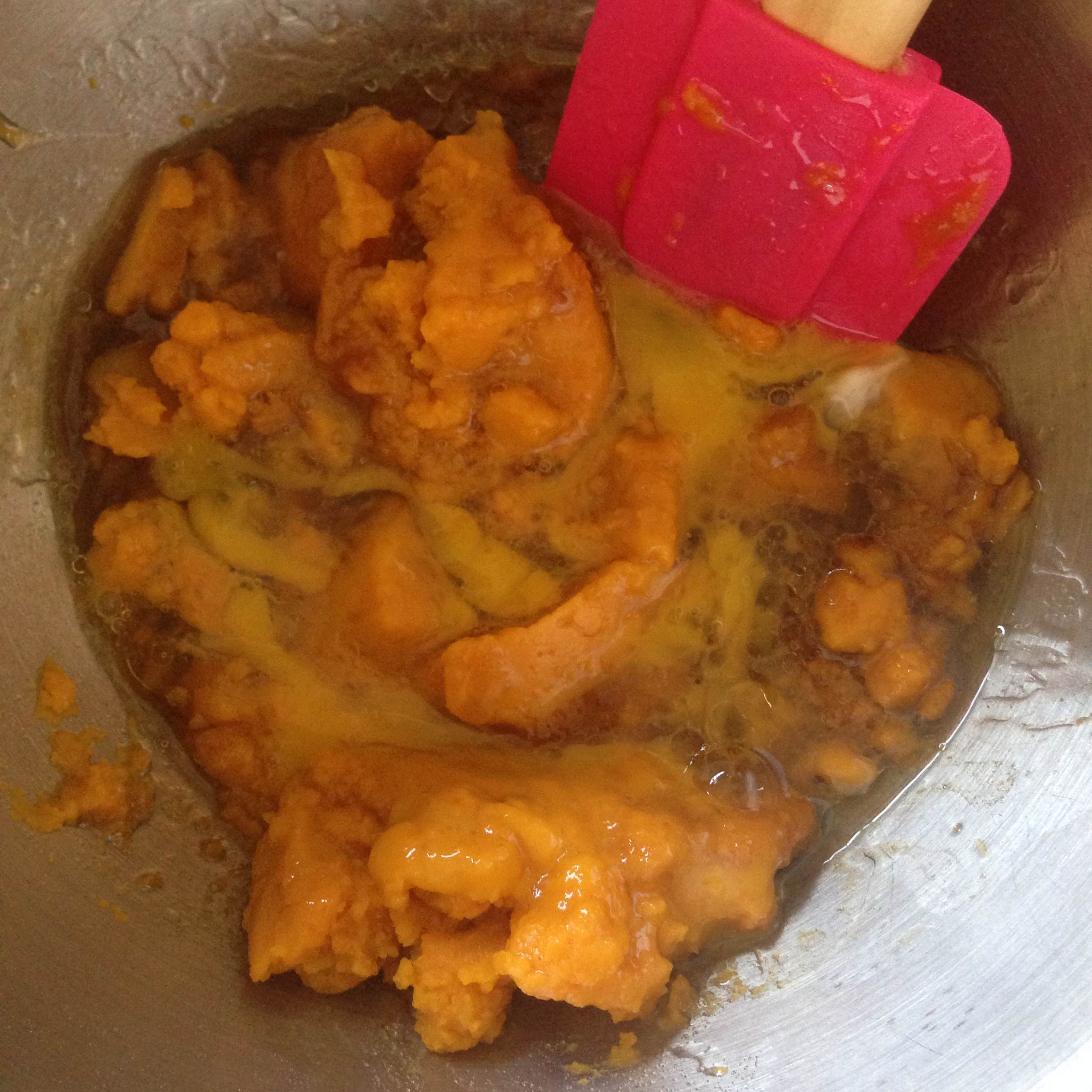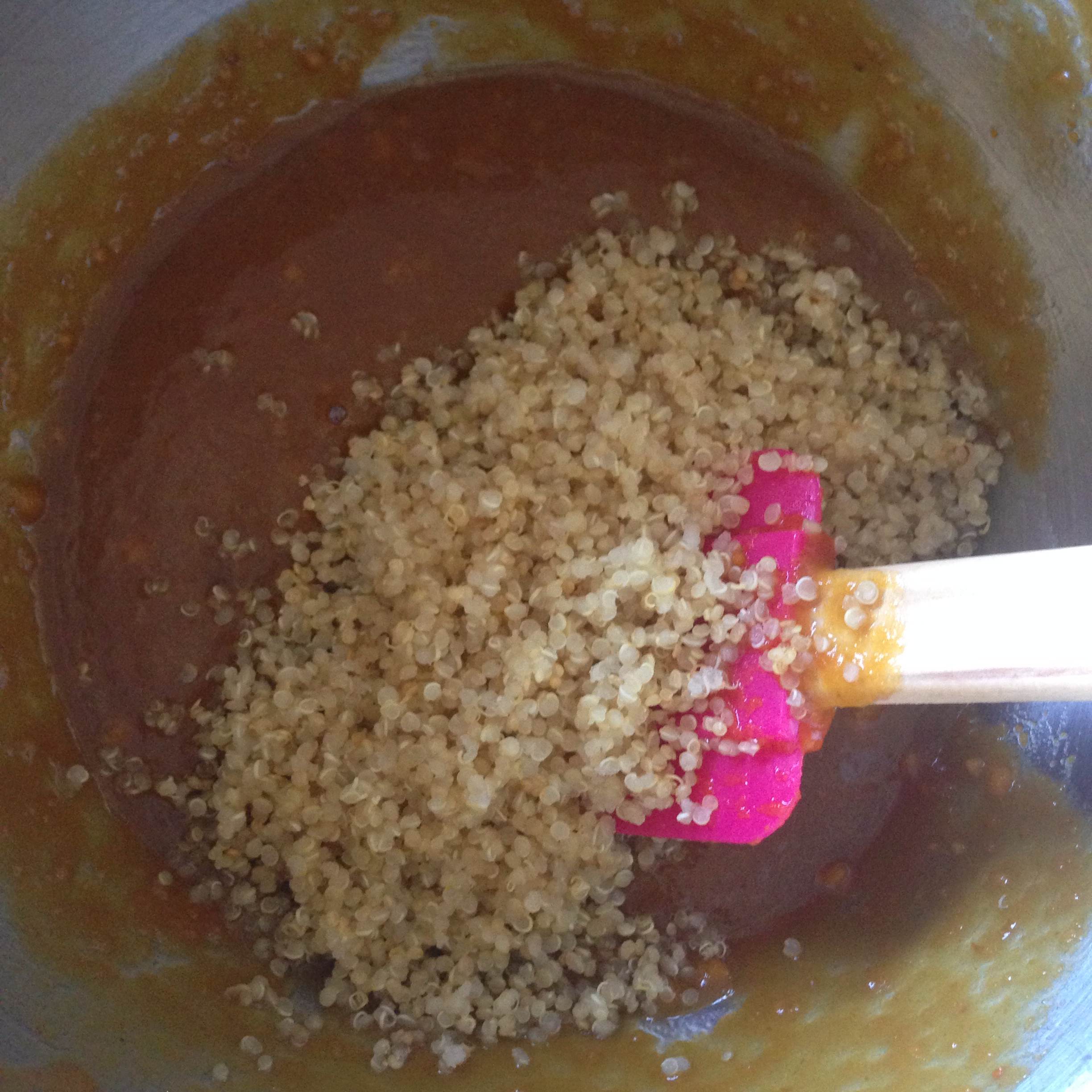 4. Mix in pumpkin puree and quinoa with wet ingredients.