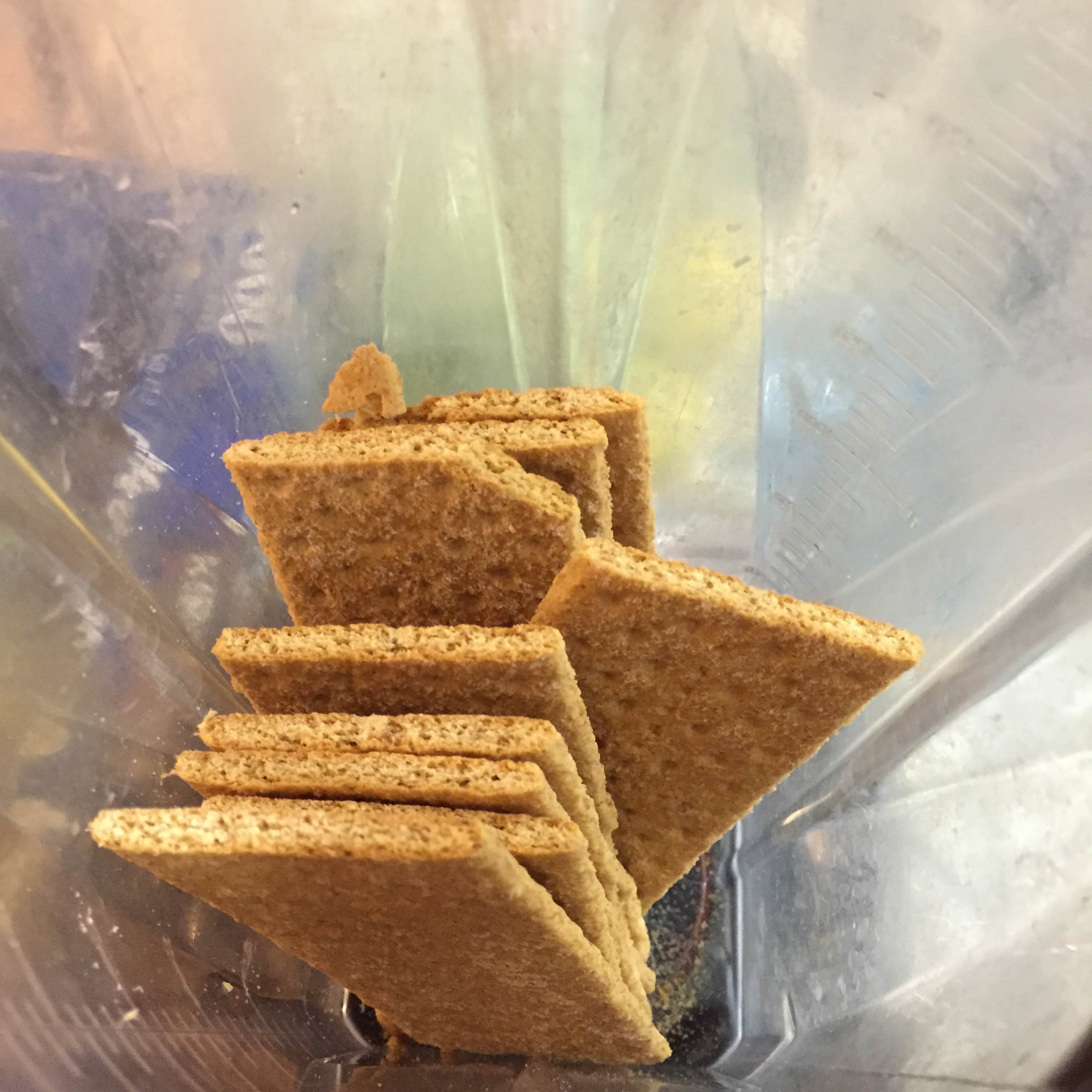 1. Make the crust. I put the graham crackers into my Vitamix and ground it finely that way. Stir in granulated sugar and salt. Mix in the melted butter.