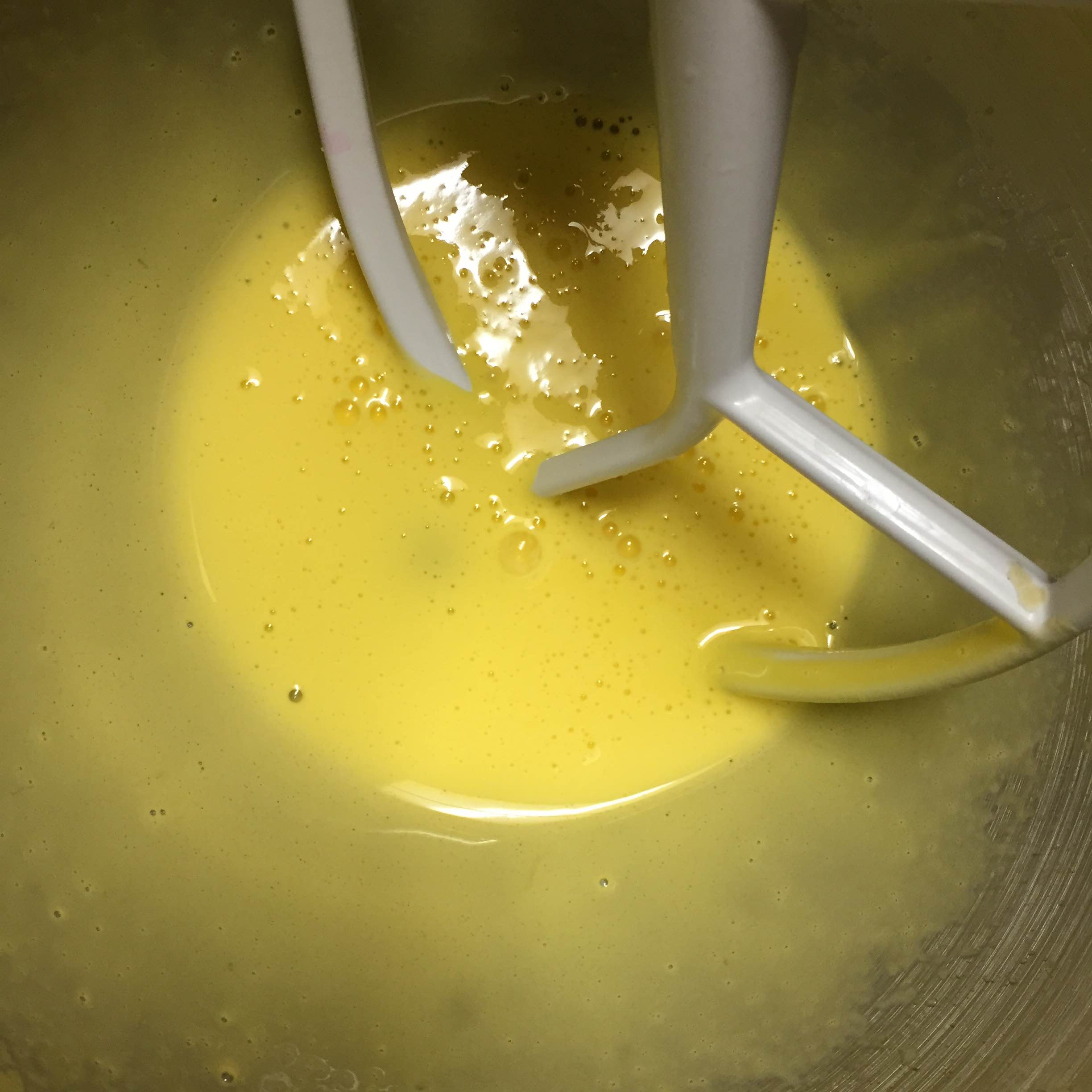 4. Using a mixer, beat the egg yolks until the eggs look pale and creamy. It will take about 5 min on high speed.