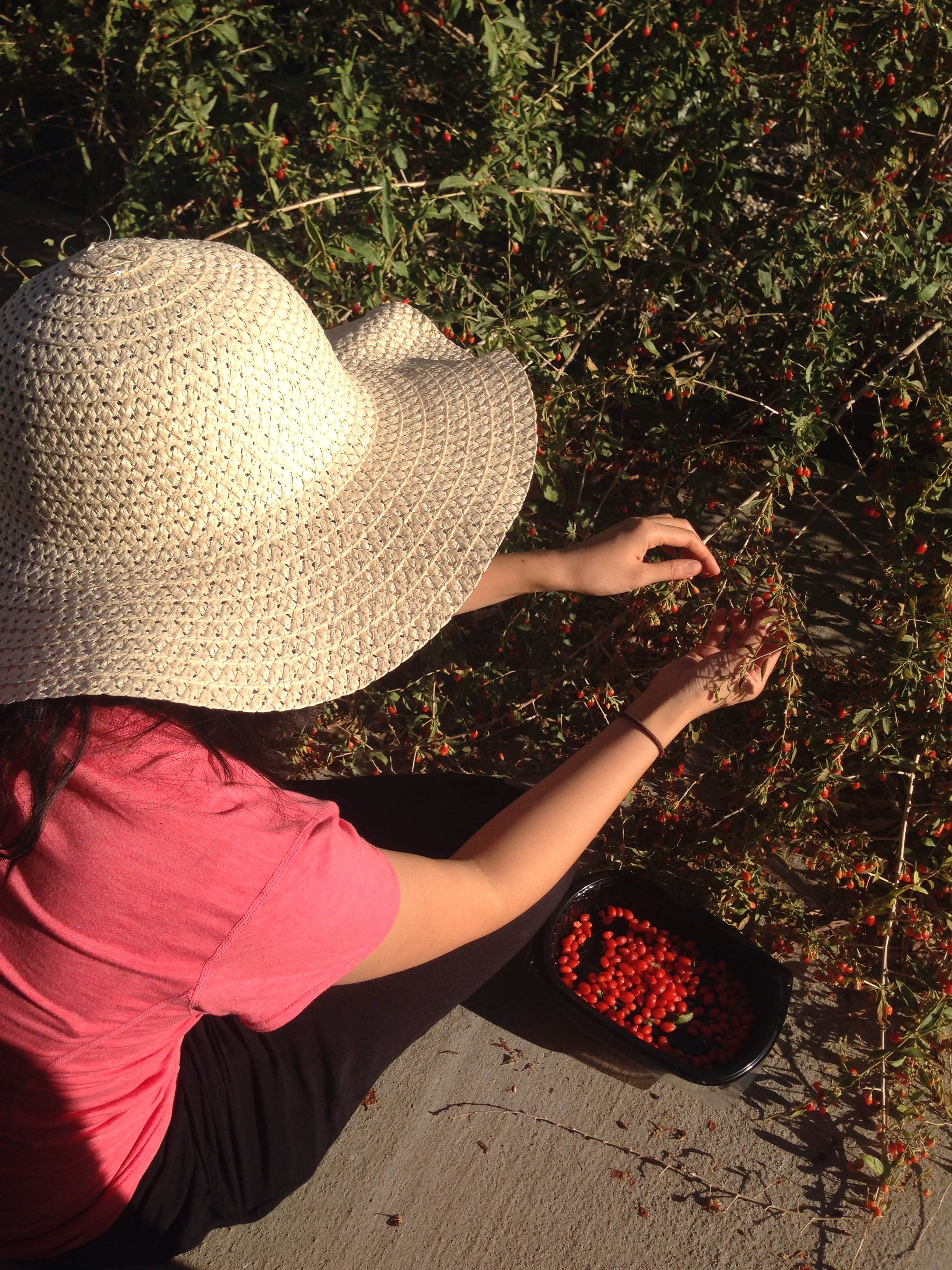 Anyway, my aunt grows goji berries in her yard! We picked her up for dinner over the weekend and my sister and dad picked the berries off the prickly plants! We got two boxes full and I couldn’t wait to make fresh goji berry juice!!! I have seen it at Whole Foods before, but because fresh goji berries are hard to keep while fresh, people dry the berries. Usually, juice is made from soaking the dried goji berries and then blending them. But I had the luxury to blend the fresh berries and with some lime and coconut juice. Turned out delicious and I have been drinking it every day before work! It is full of antioxidants, is said to be the fountain of youth, and can treat many health problems! But definitely discuss with your doctor if you take drugs for blood pressure or diabetes as it can interact with your drugs. The juice tastes funky, but it isn’t too bad with the lime – you will get used to it!