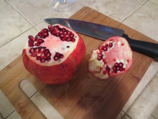 Pomegranate seeds and juice are so expensive to buy! But I never thought of buying the real actual pomegranate and cutting it up. Normally they run about $1.50-$3 per fruit. Still undeniably cheaper than the packaged seeds and juice! Right now the fruit is in season! September – January so eat your heart out! 🙂 When you cut one up, it definitely gives you almost 2 cups full. And eating as much pomegranate as you can is good for you! Tons of antioxidants that help with fighting heart disease and cancer! And it has more than your typical blueberries and cranberries!