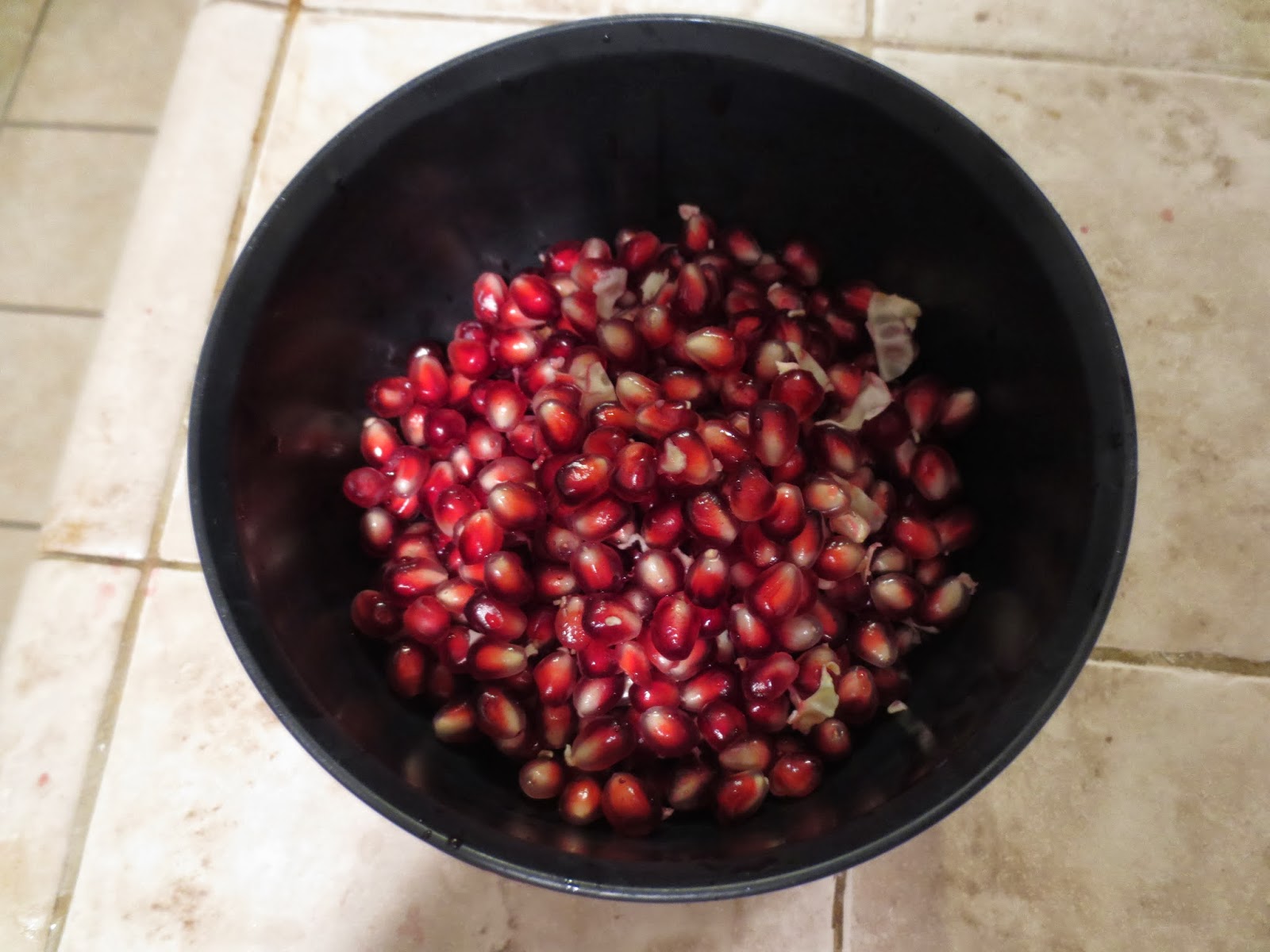 Pomegranate seeds and juice are so expensive to buy! But I never thought of buying the real actual pomegranate and cutting it up. Normally they run about $1.50-$3 per fruit. Still undeniably cheaper than the packaged seeds and juice! Right now the fruit is in season! September – January so eat your heart out! 🙂 When you cut one up, it definitely gives you almost 2 cups full. And eating as much pomegranate as you can is good for you! Tons of antioxidants that help with fighting heart disease and cancer! And it has more than your typical blueberries and cranberries!